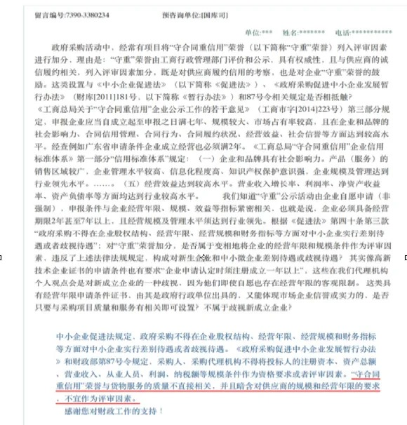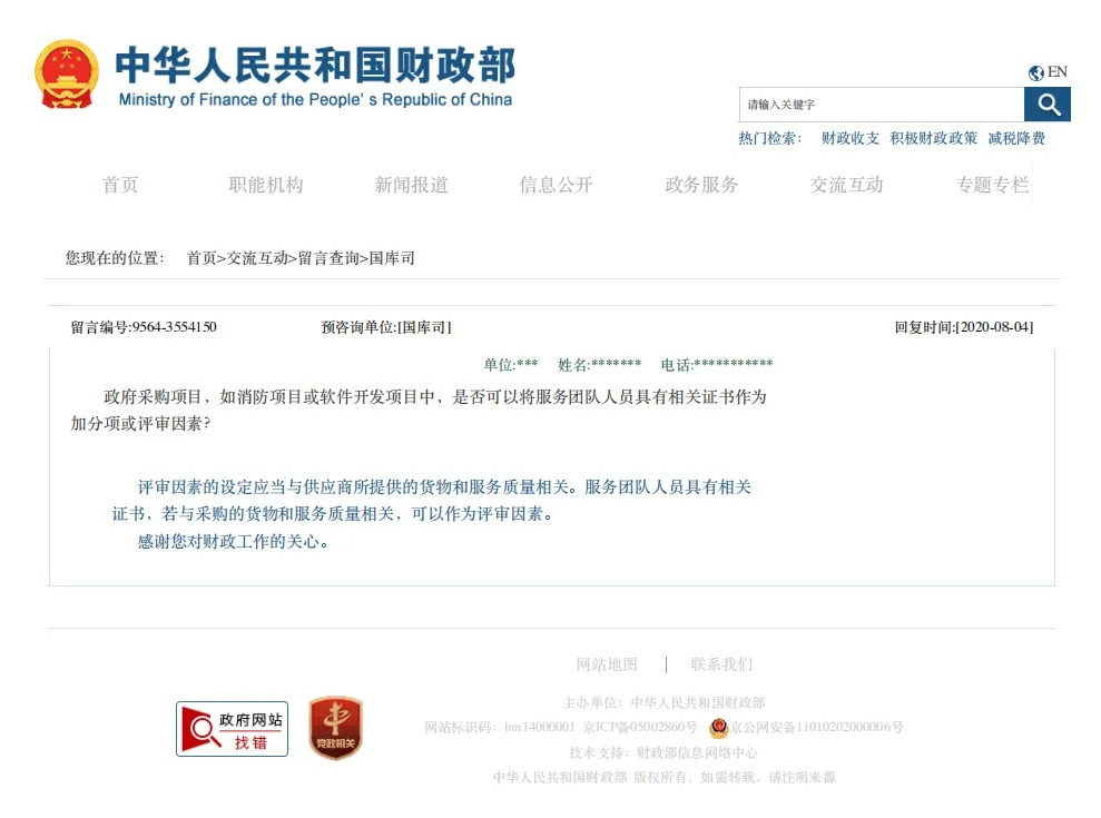 財(cái)政部回復(fù):與采購(gòu)的貨物和服務(wù)質(zhì)量相關(guān),可以作為評(píng)審因素
