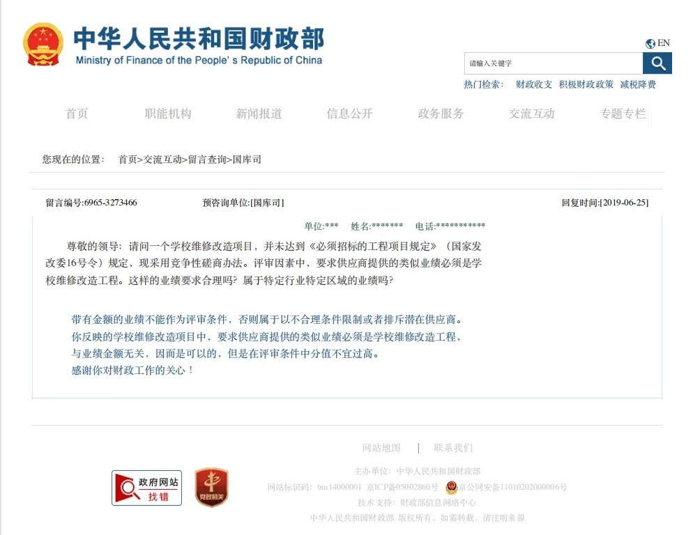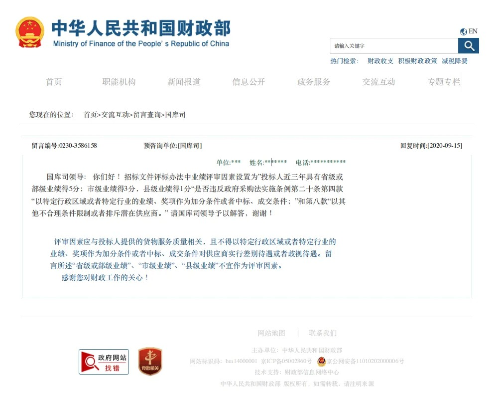 財(cái)政部回復(fù):“省級(jí)或部級(jí)業(yè)績(jī)”、“市級(jí)業(yè)績(jī)”、“縣級(jí)業(yè)績(jī)”不宜作為評(píng)審因素