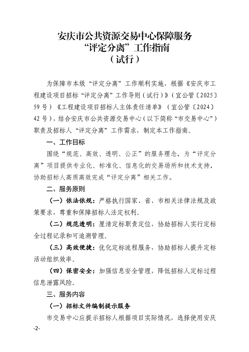 關(guān)于印發(fā)《安慶市公共資源交易中心保障服務(wù)“評(píng)定分離”工作指南(試行)》的通知